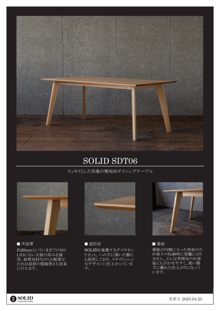 このテーブルが生まれた背景には、金額的にSOLIDのテーブルの価格がネックで諦めざる得ない人も買えるテーブルを作りたい!!
