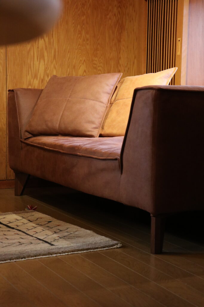 展示では、SLC05ソファにこの「ヌバック」が採用されております。