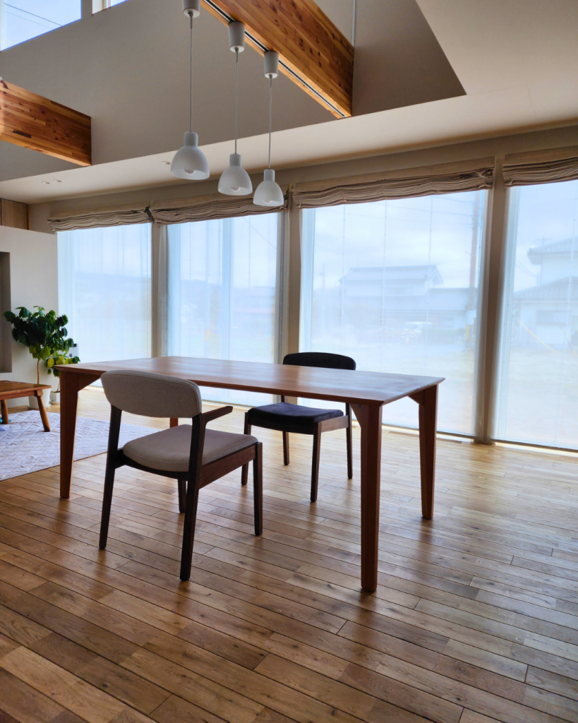 テーブルとチェアで違う木の種類をお選び頂きました。