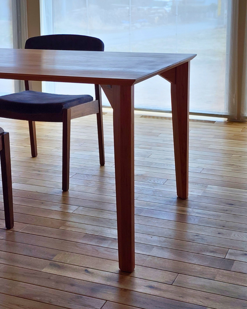 ブラックチェリーのテーブルは経年変化で1年もしない内に色味が濃く変わっていきます。